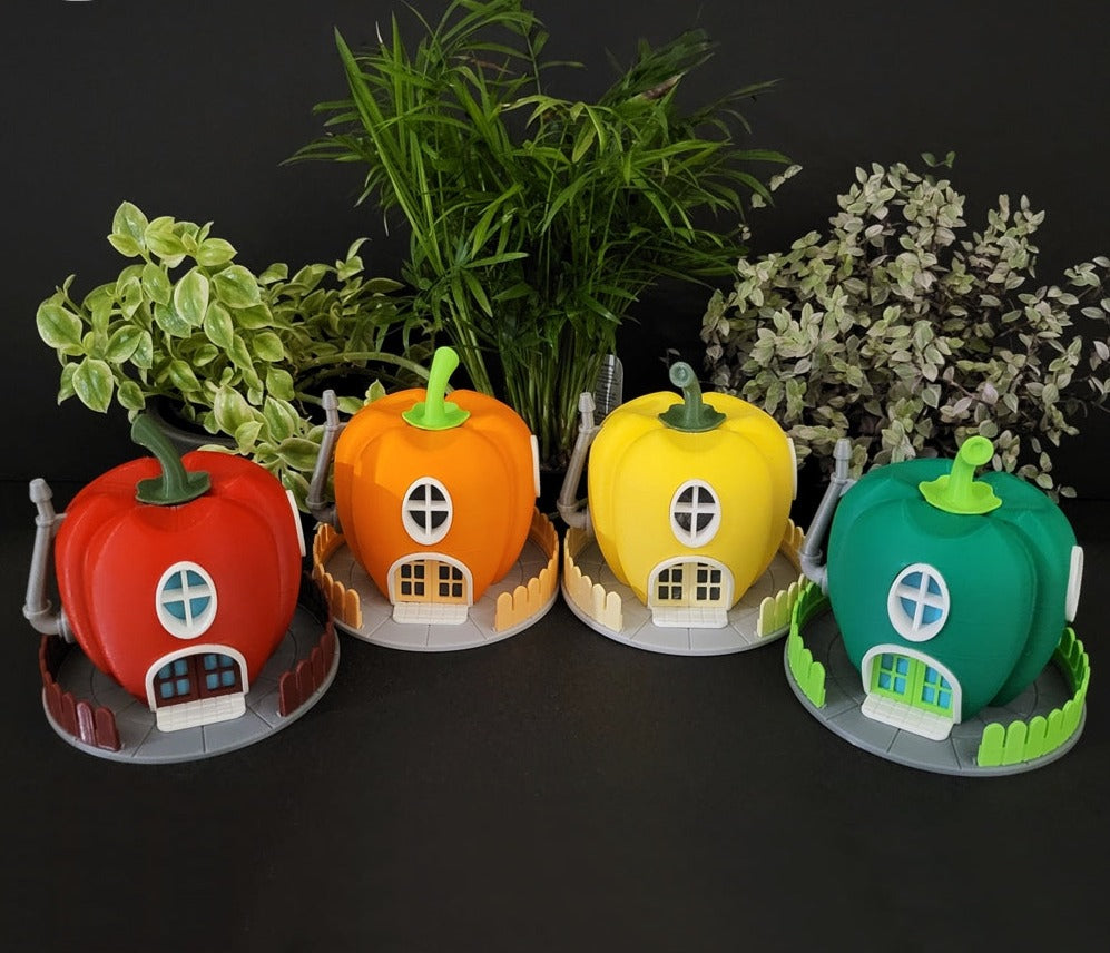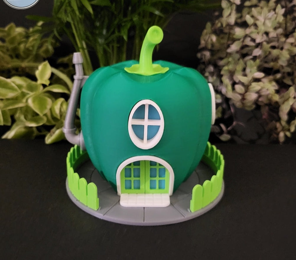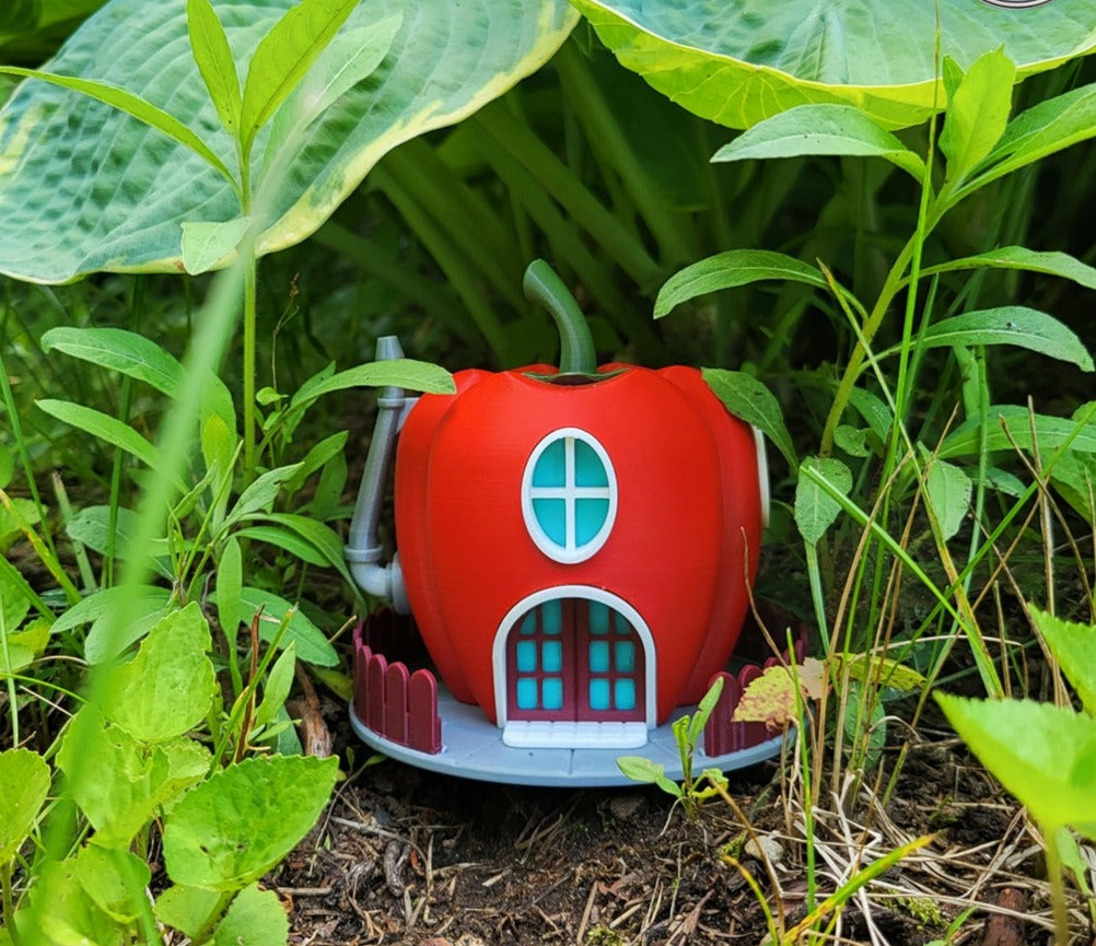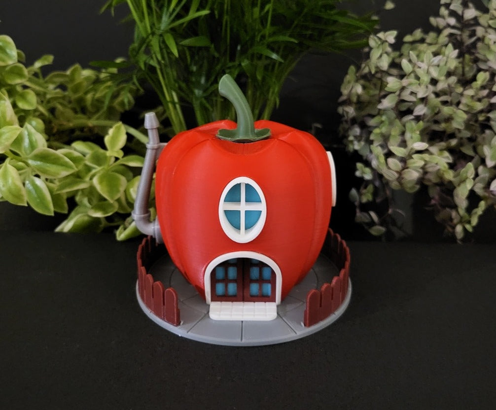 This bell pepper shaped fairy house is an enchanting addition to any garden. Hand-crafted and designed to enhance the natural beauty of your outdoor space, this fairy house is made with high-quality materials for durability and longevity. Create a whimsical fairy garden with this unique and charming accessory.