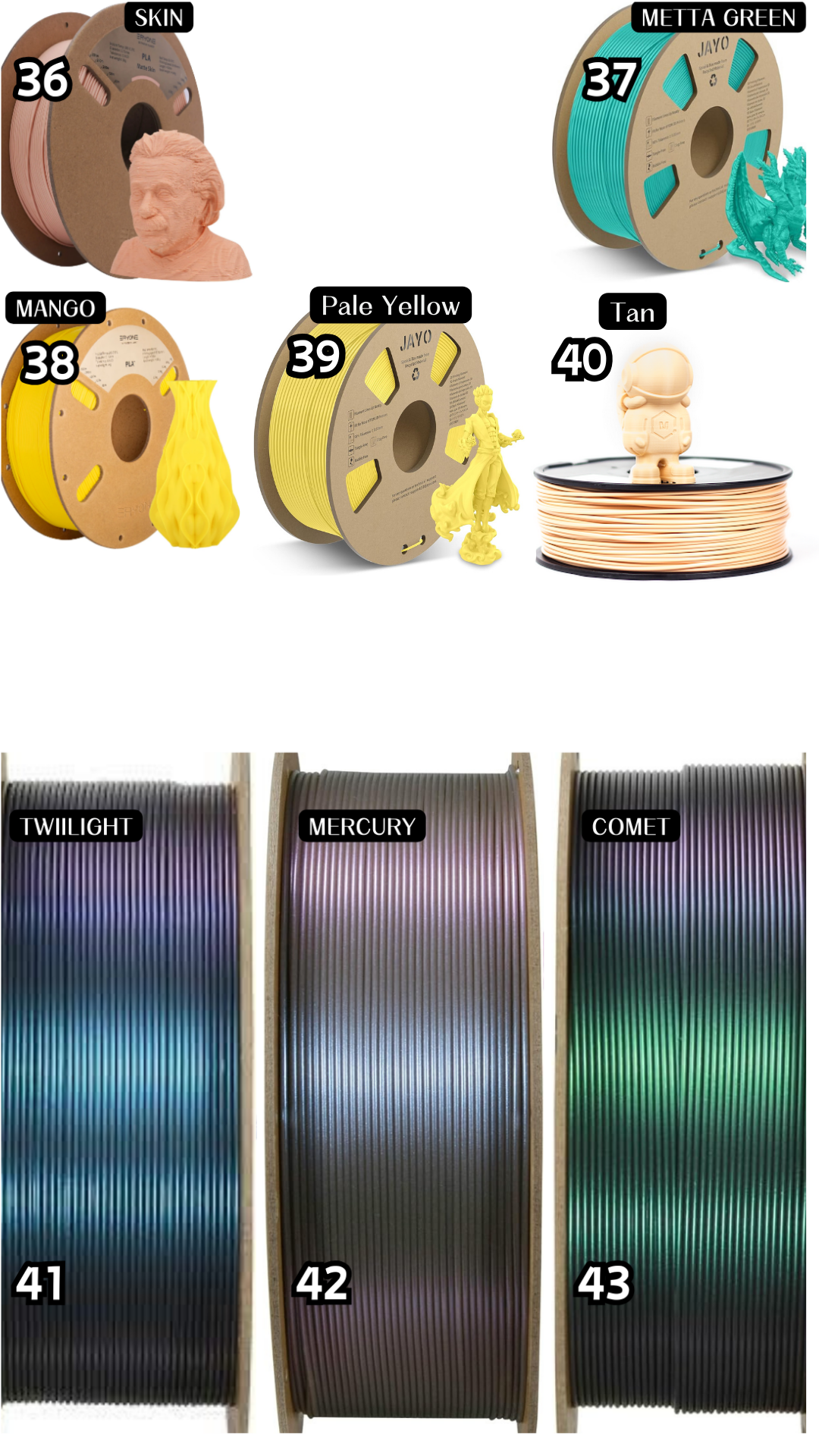 Rainbow color and gradients are a unique one of a kind color change, you may or may not get the same color results shown. Unique to each print, they produce different color patterns, for example you may not get all colors in the rainbow filament, you may only get one or 2 colors depending on the size of the print, although you can trust we try our best to produce the best possible color results for your one of a kind 3d prints.