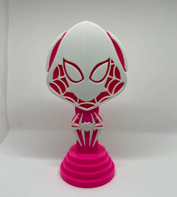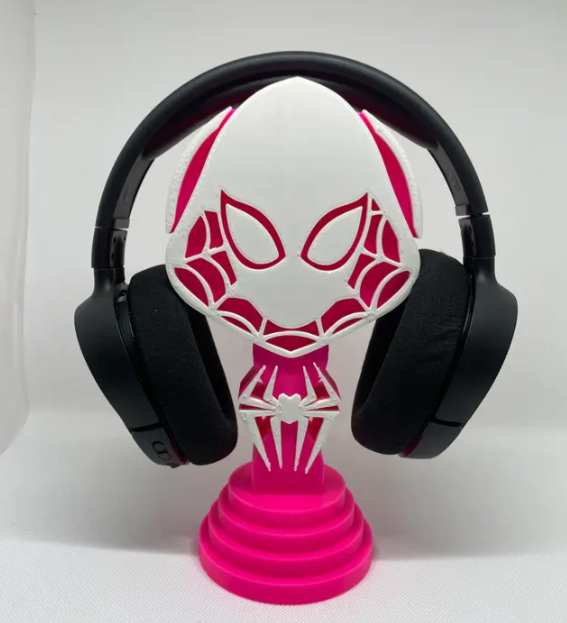 The Spider Gwen Headphone Stand is designed to securely hold and organize your headphones. Crafted from high-grade plastic, it's a strong and durable product, perfect for keeping your headphones in good condition and easily accessible.