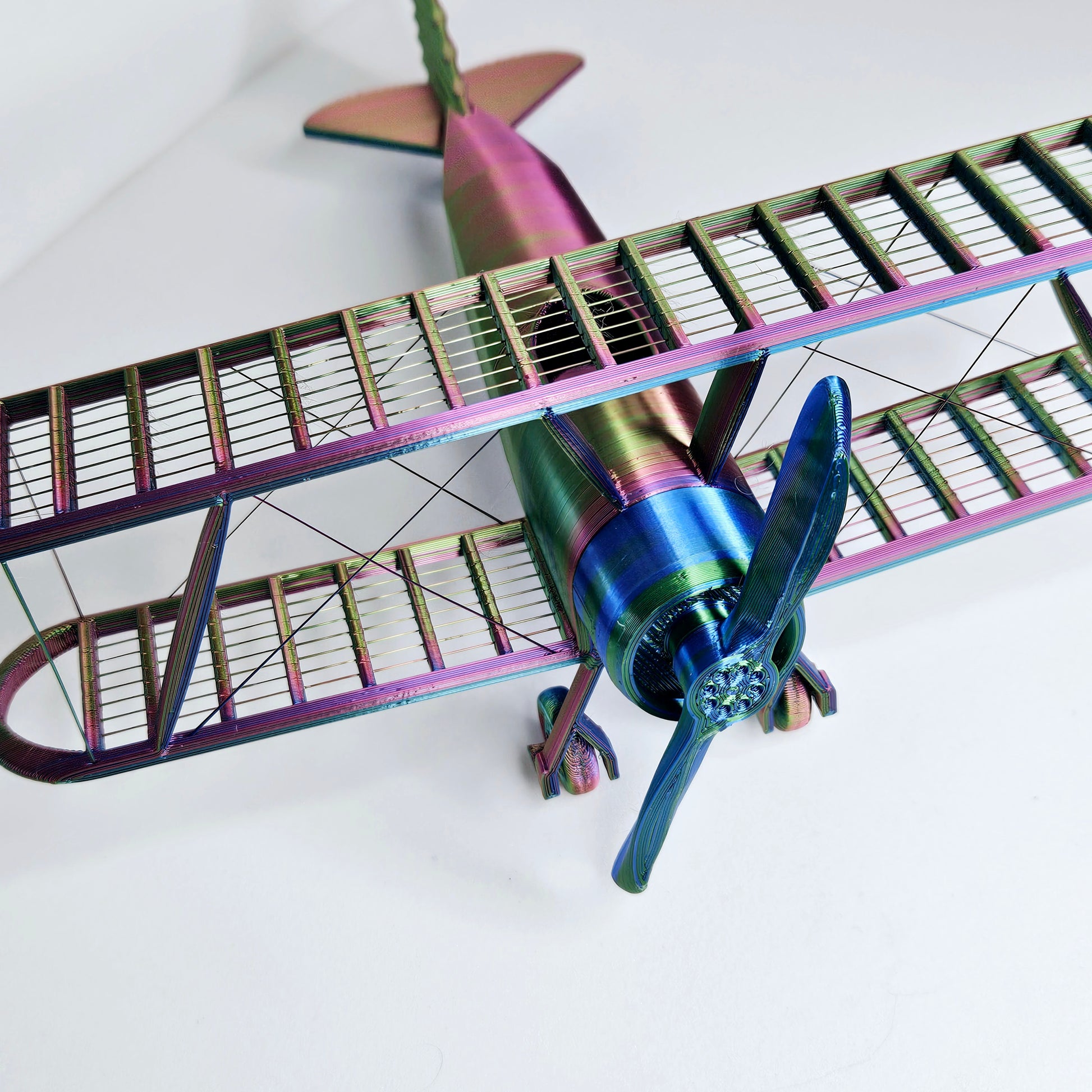 This String Biplane is a 3d printed model crafted with delicately intricate string designs, perfect for any aviation enthusiast. Its precise construction and detailed features make it a must-have for any collection.